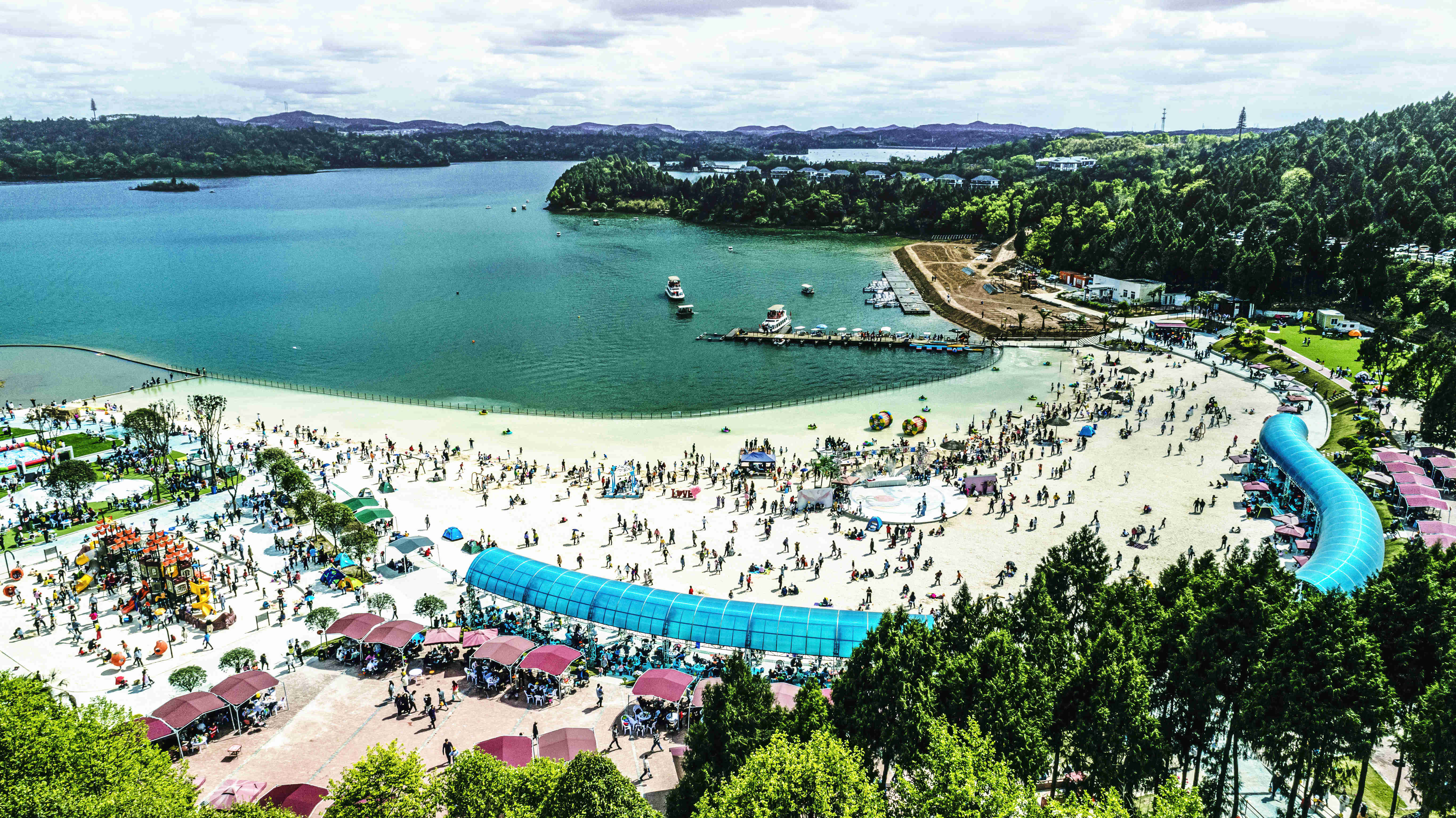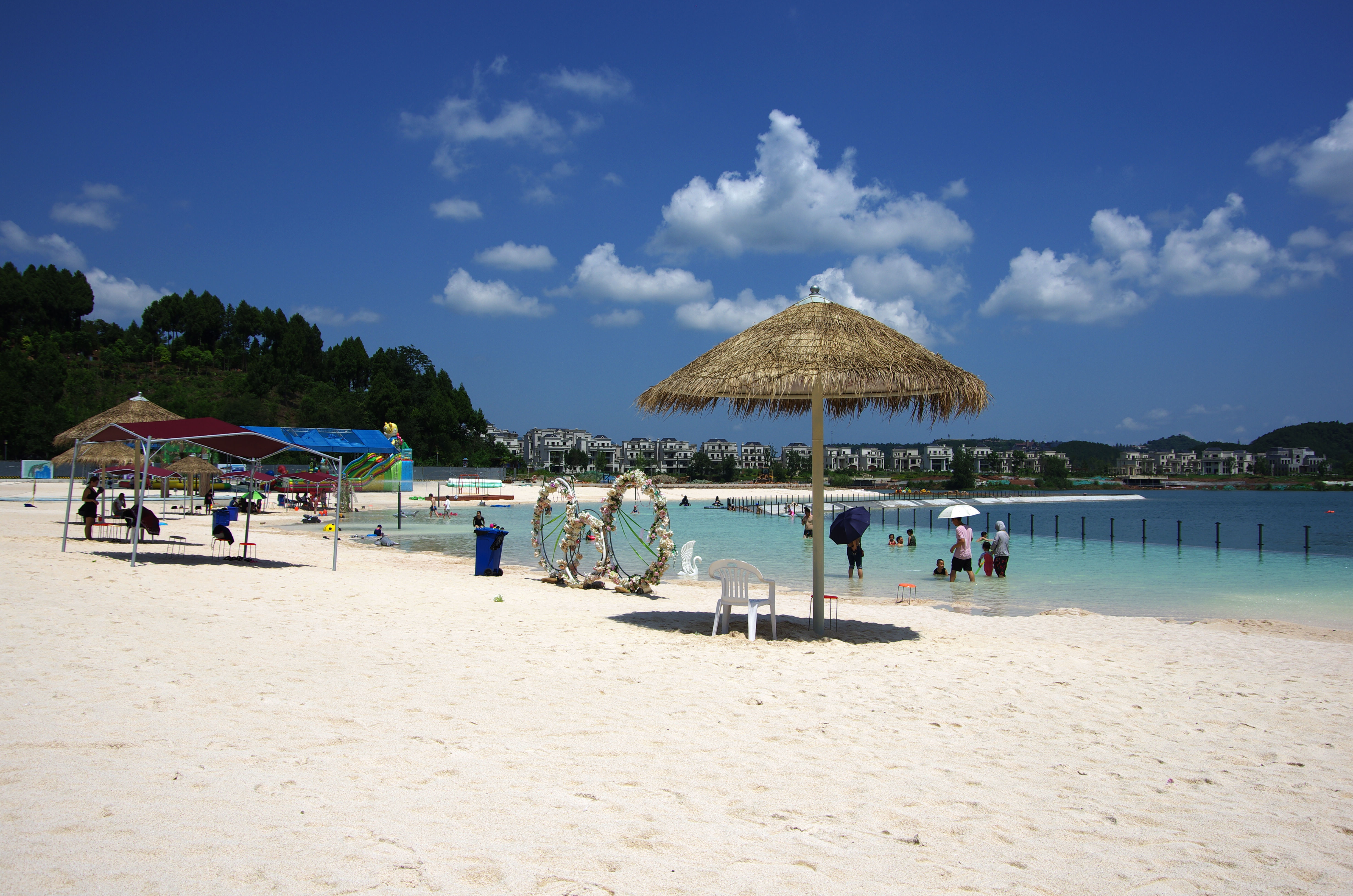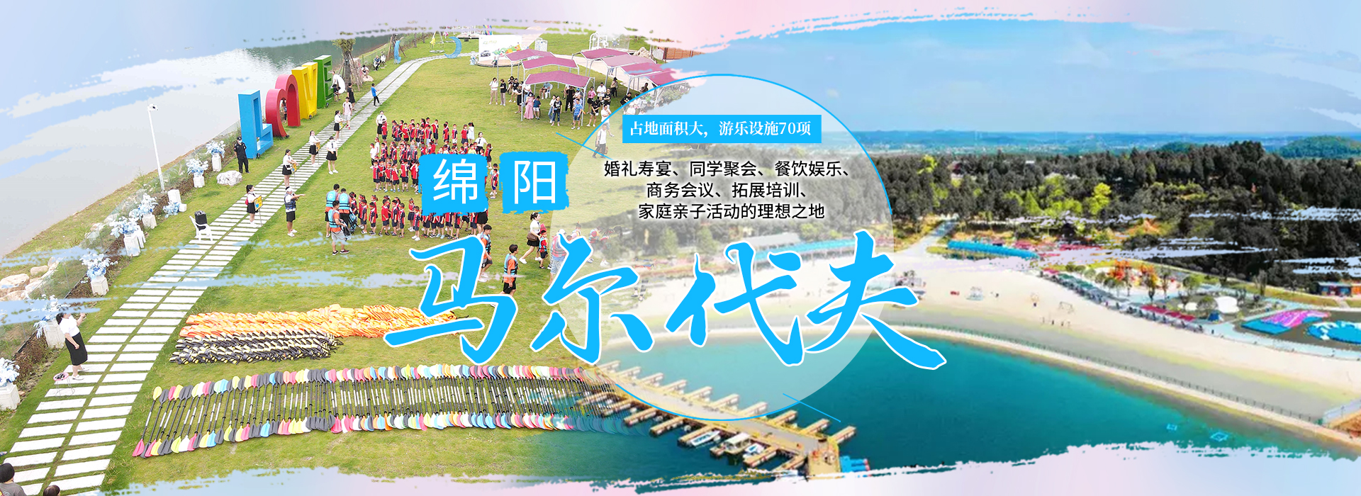 綿陽嘉成文化旅游有限公司是一家旅游開發(fā)公司,成立于2019年。 親水灣沙灘樂園項目由綿陽嘉成文化旅游有限公司開發(fā)運營,位于國家級水利風(fēng)景區(qū)——綿陽市仙海水利風(fēng)景區(qū),距綿陽市區(qū)15公里,車程約半個小時,是依托沉抗水庫建設(shè)的仙海風(fēng)景區(qū)重點旅游項目。進(jìn)入仙海風(fēng)景區(qū)上坡向左進(jìn)入環(huán)湖路前行1000米。項目總占地220畝,其中核心沙灘樂園占地100畝,現(xiàn)建成沙灘休閑、淺灘嬉水、水上運動,親子蹦蹦云、網(wǎng)紅多人秋千、人力過山車、水幕秋千、團(tuán)隊拓展等項目十余個,還開設(shè)有特色中餐、仙?;疱侓~,自助燒烤等飲食項目。 近觀青山綠水,遠(yuǎn)眺碧波蕩漾,清晨朝霞映翠、傍晚水天一色。親水灣沙灘主題樂園有可容納200人的沙灘會議室和30人的小型會議室;棋牌室16間; 商務(wù)KTV;餐飲中心可同時容納300人用餐;篝火晚會場地等,是婚禮壽宴、同學(xué)聚會、餐飲娛樂、商務(wù)會議、拓展培訓(xùn)、家庭親子活動的首選之地。